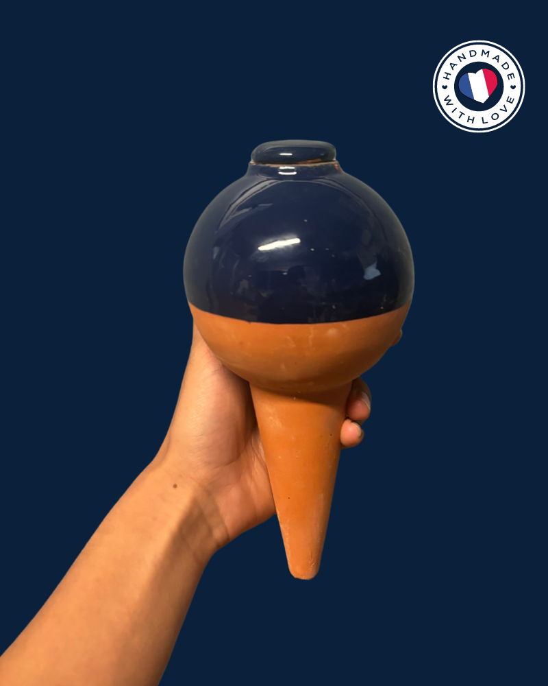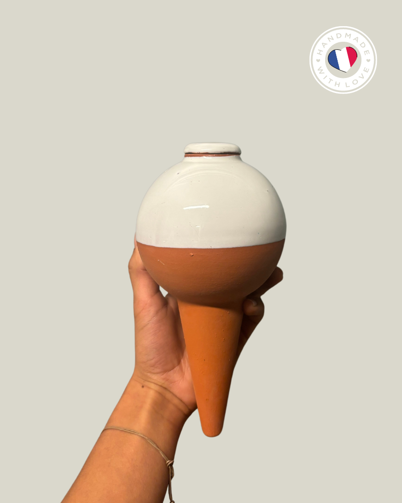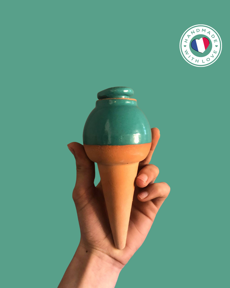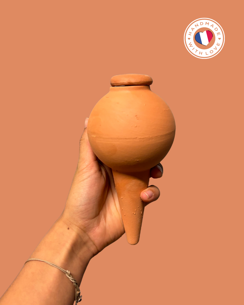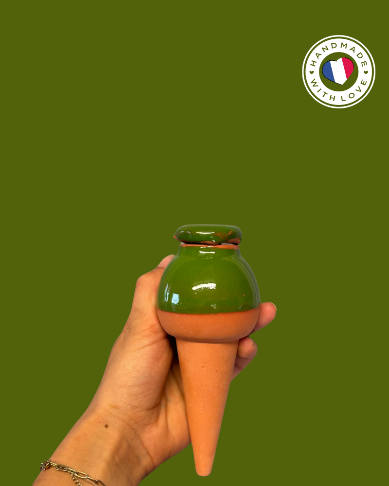 Les ollas sont des pots en terre cuite que vous plantez dans vos plantes, aromates et jardins afin d’économiser l’eau, gagner du temps et faciliter l’entretien de vos cultures. La terre cuite est un matériau poreux, qui l’est davantage lorsqu’elle est cuite à basse température. Cela permet ainsi à l’eau dans l’ollas de s’échapper facilement par les parois, et d’arroser vos plantes à la racine. 100 % de l’eau est consommée par la plante.