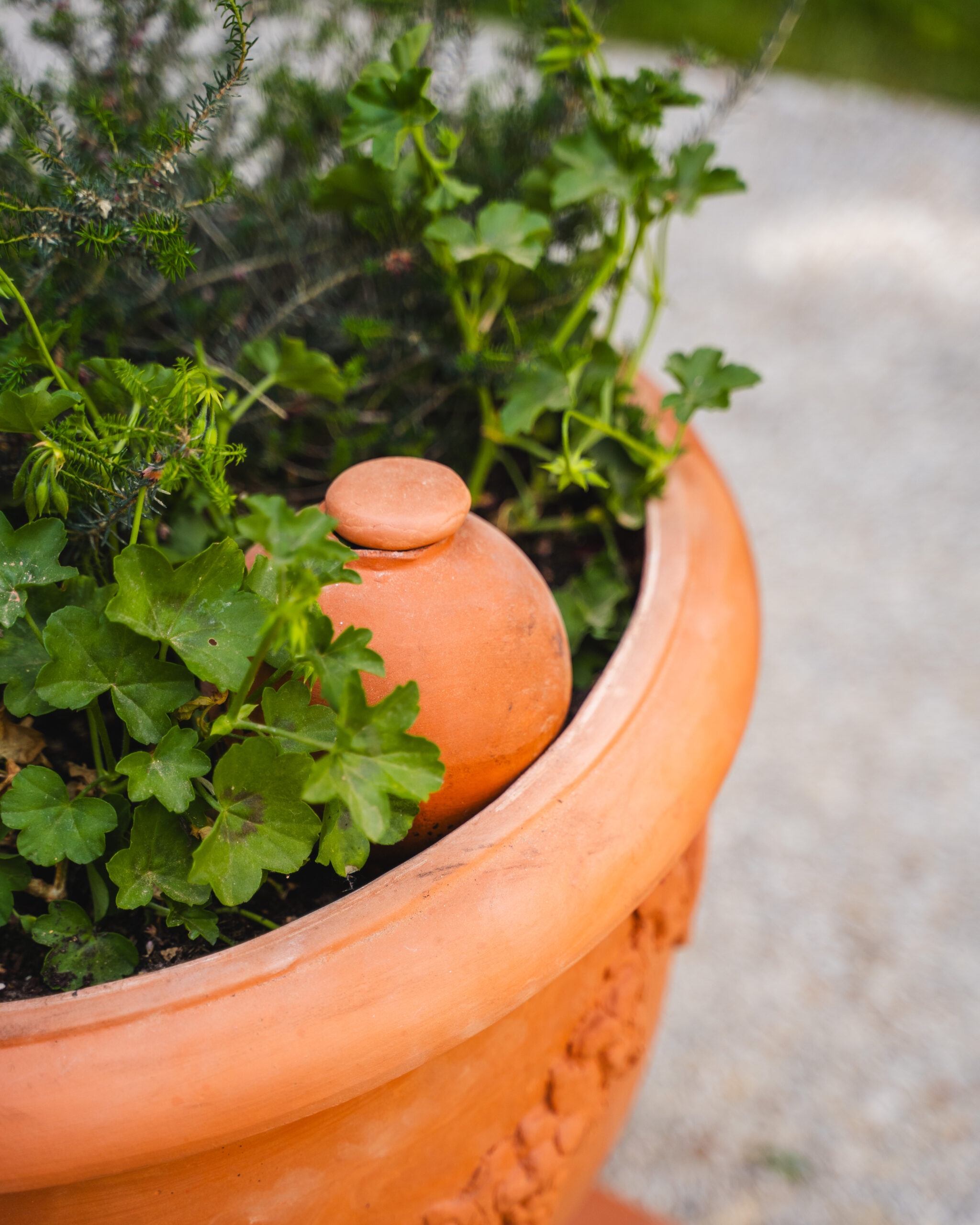 La porosité naturelle de la terre cuite libère par capillarité l’eau dont les plantes ont besoin.