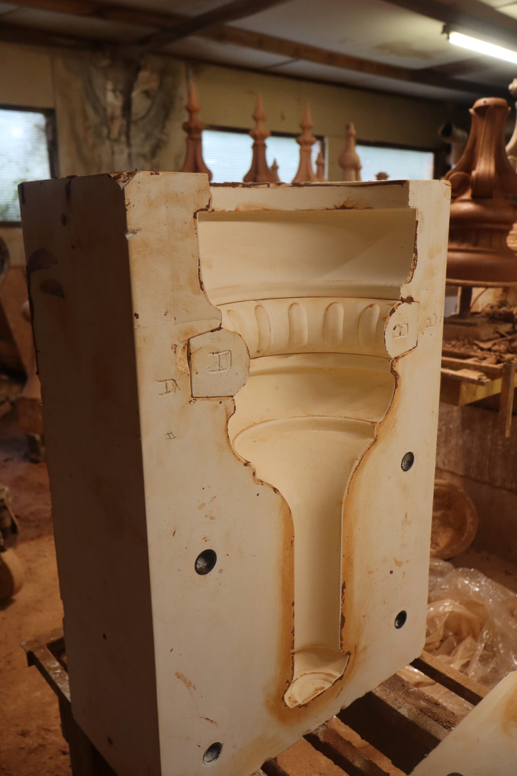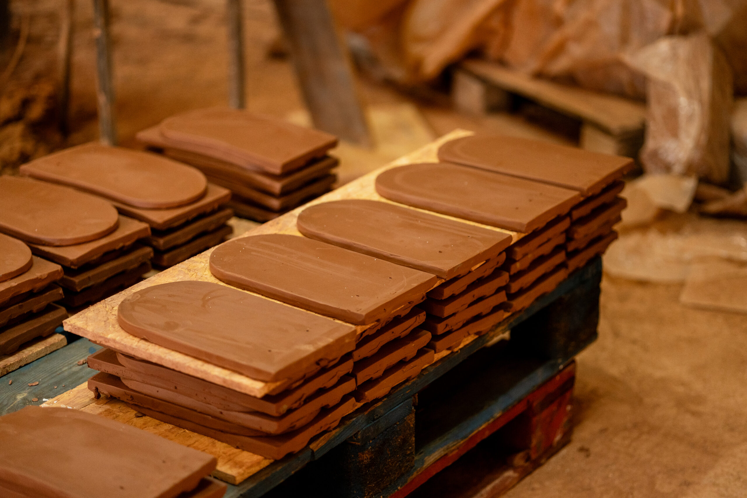 Le plâtre est choisi car il permet une reproduction fine et peut être utilisé en série pour la production.Étape 5 – Production en série des faîtières